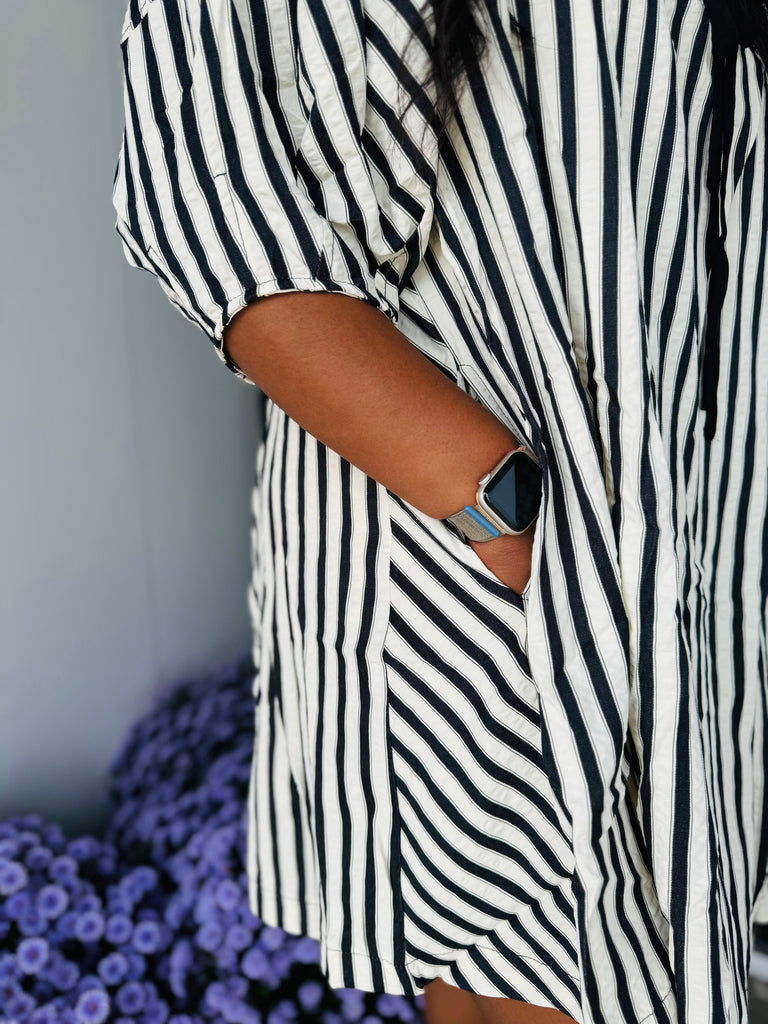 With POCKETS! A size guide has been included in the photos, but this dress is a bit oversized.