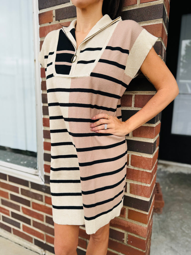 Adorable comfortable dress with a quarter zip.