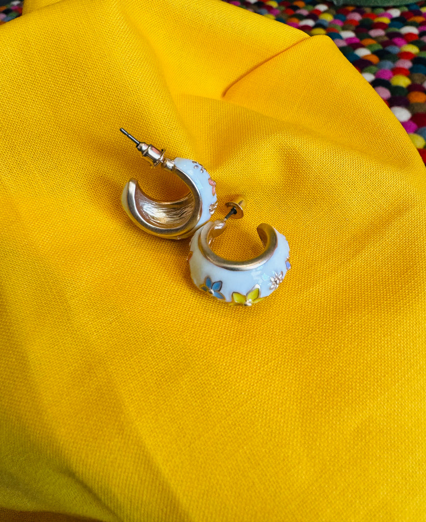Dainty & fun, floral enamel hoops. Hypoallergenic with titanium posts and brass hooks.