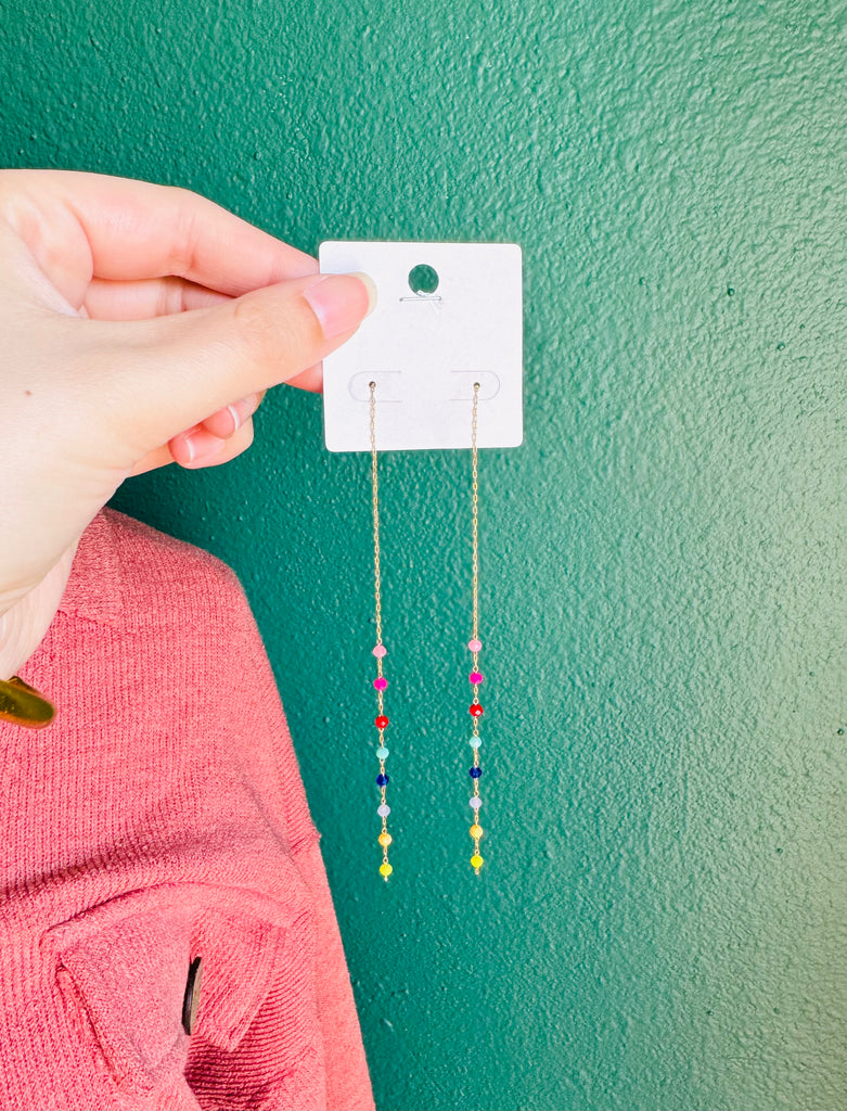 One word: FUN! Add some color to your outfit with our Color Pop Thread Earrings. These are lightweight and will go with almost any outfit! Gold colored hardware.