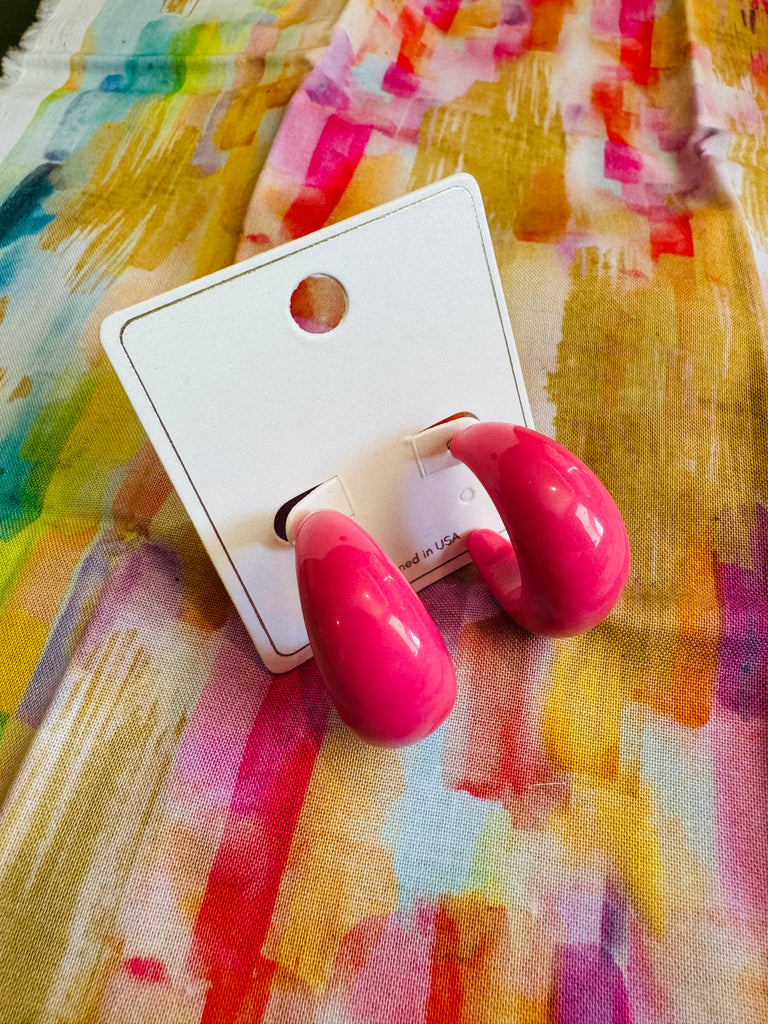 Pink has proven to be one of the hottest colors this year! Stay on top of the trends with our Fuchsia Chunky Hoops.