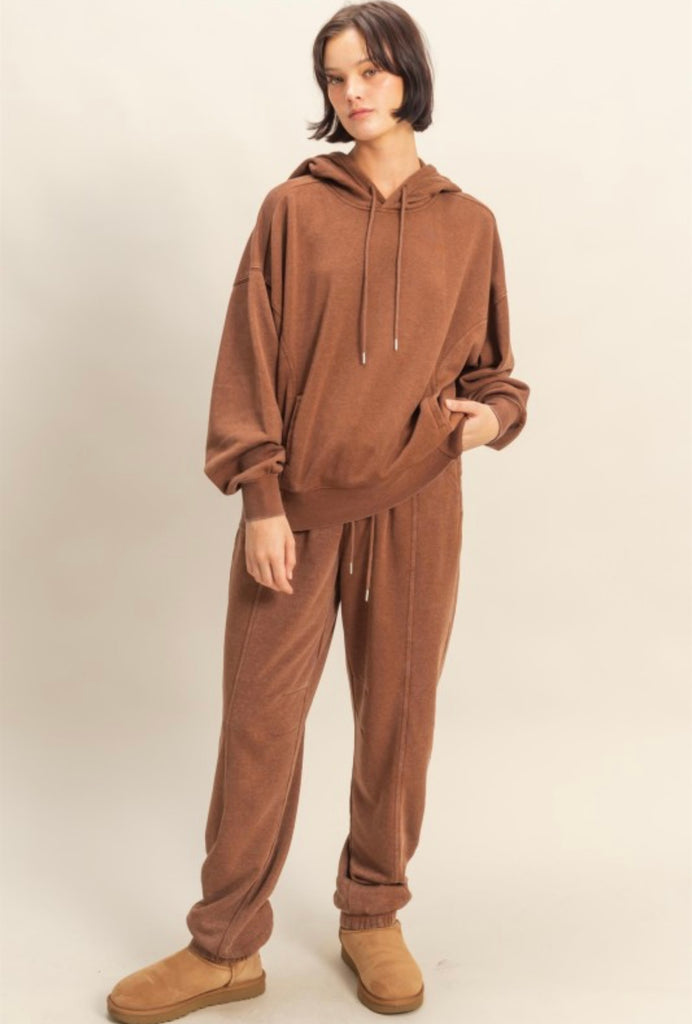 Drawstring waist. Ultra comfy. 51% cotton, 49% polyester. THE PERFECT SWEATSHIRT to go with our Maple Babe sweatpants. Lightweight.