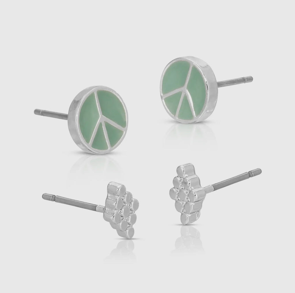Two sets of sterling silver dipped and nickel free stud earrings with post backing. These make awesome gifts for all ages!