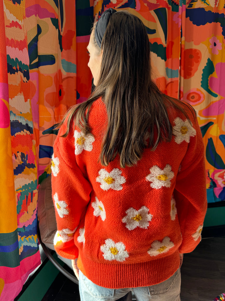 Sun Orange Daisy Sweater