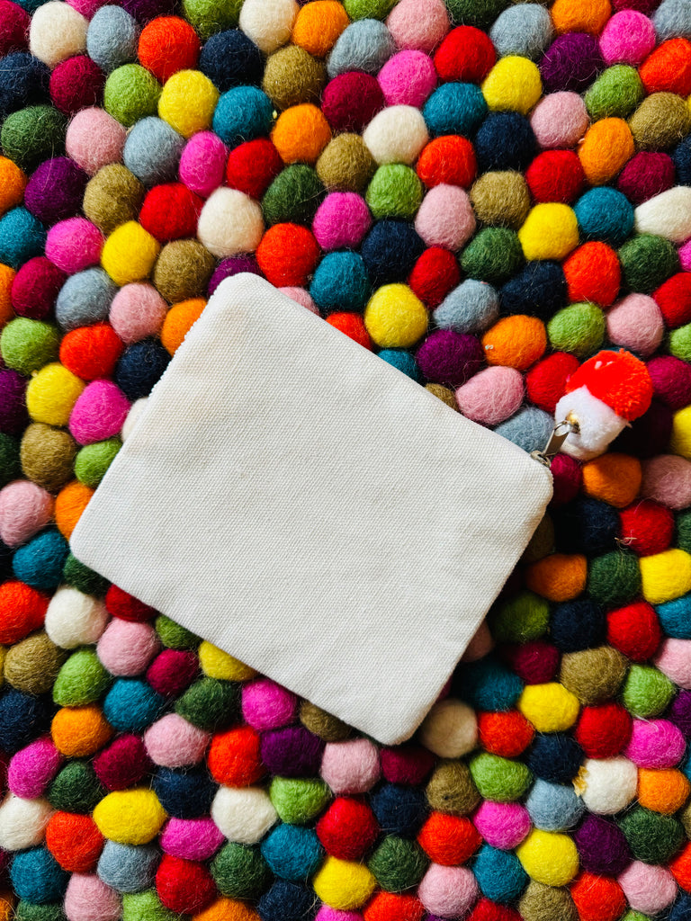 This beaded coin purse fits in almost any bag! It features a fully beaded front with vibrant lettering and a cute smile design, with a solid white back. There's a pom pom on the zipper for an extra bit of fun!